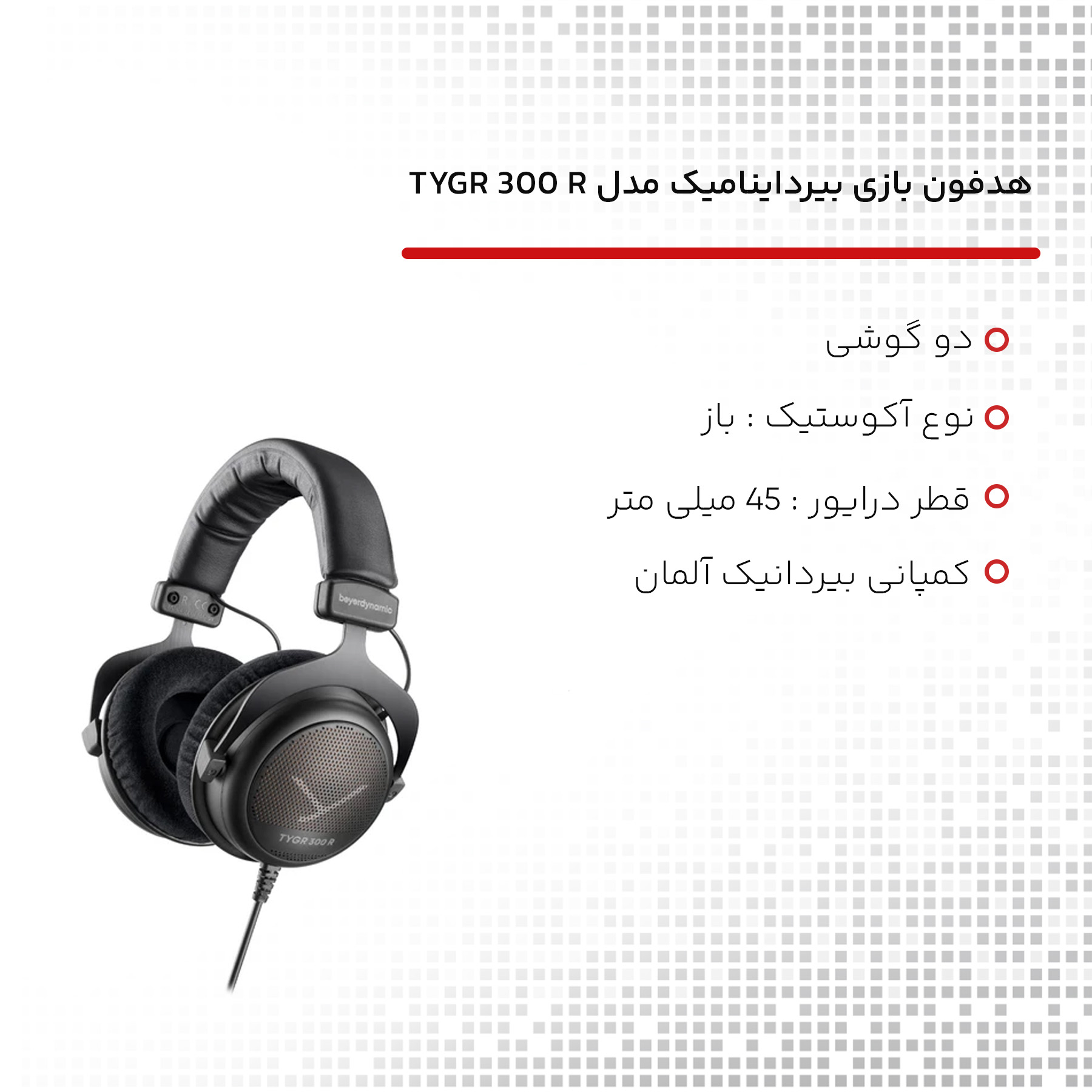 مشخصات: هدفون مخصوص بازی بیرداینامیک مدل TYGR 300 R